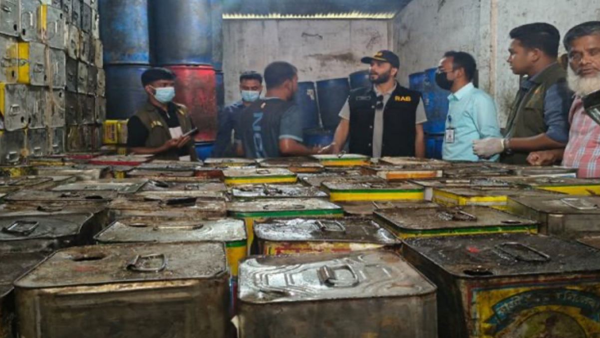 র্যাব-৭ অভিযানে মজুত করা দেড় লাখ লিটার ভোজ্যতেল জব্দ