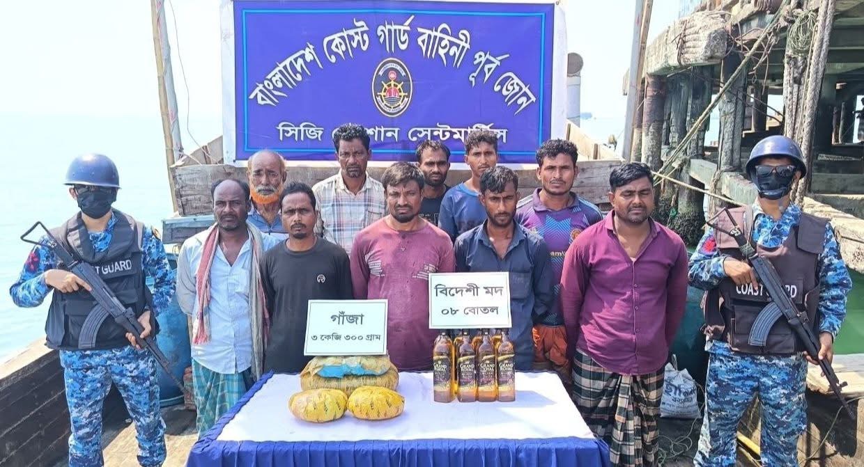 কক্সবাজারের টেকনাফ উপজেলার সেন্টমার্টিন দ্বীপে প্রায় ৩ লক্ষ ৬০ হাজার টাকা মূল্যের বিদেশি মদ ও গাঁজাসহ ১০ চোরাকারবারিকে আটক করেছে কোস্ট গার্ড।